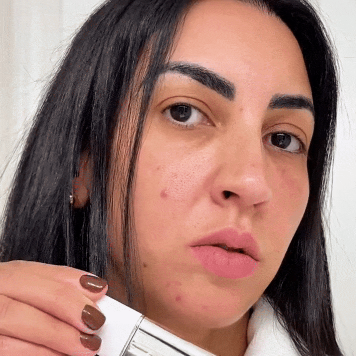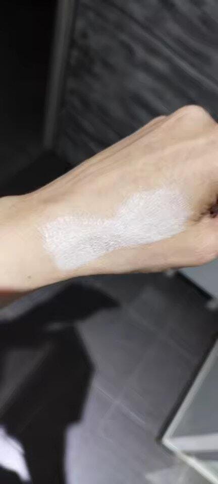 Dra några lätta streck över ansiktet. Den vita formulan börjar direkt ändra färg när du smetar ut den och anpassar sig automatiskt efter din hudton.