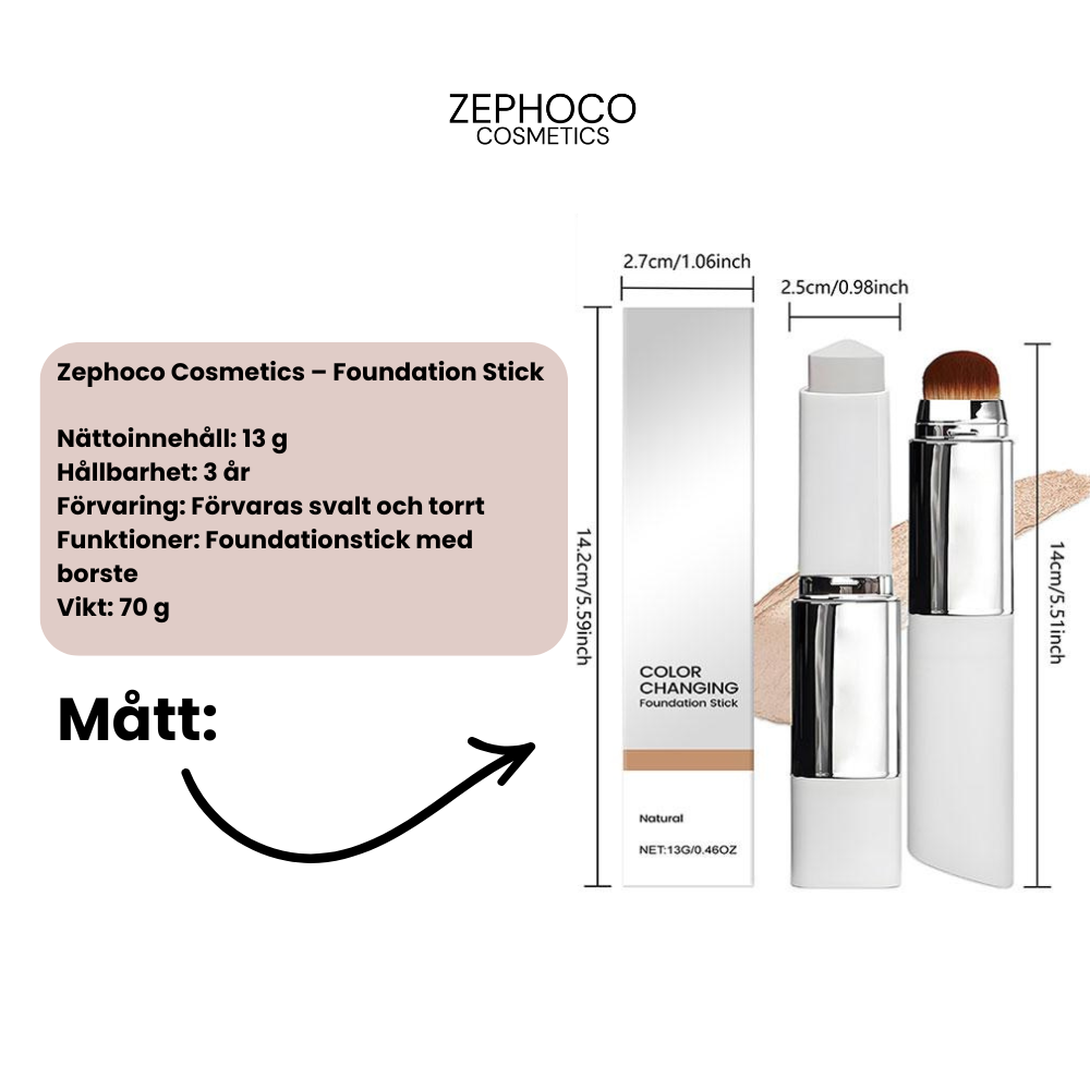 Vår foundation stick med inbyggd borste är den perfekta lösningen för att snabbt få tillbaka din lyster – oavsett om morgonen är kaos, barnen ropar eller du bara behöver fräscha upp dig på några sekunder.